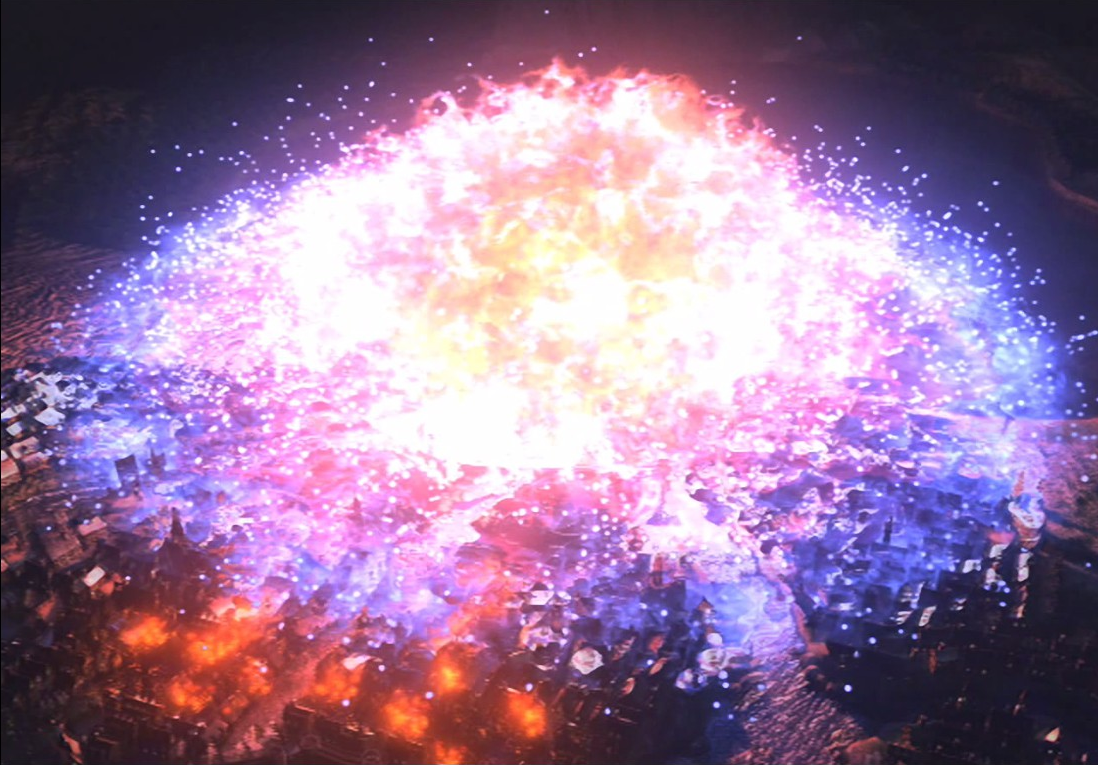 Kuja summons Bahamut, which blasts the town with fireballs, destroying many buildings and setting their remains on fire. The Knights of Pluto are called before the new queen to deal with the situation, and she must select the right tasks for each knight.[note 1] Two are ordered to gather information, two are sent to protect the citizens, two are ordered to prepare the cannons, and two are ordered to contact Lindblum and request reinforcements (the reinforcements, if ever sent, did not make it in time). Steiner and Beatrix work together to slay the hordes of Mistodons that infest the town, and have some success clearing the streets. The Knights of Pluto evacuated the civilians, and thus Alexandria has few casualties.