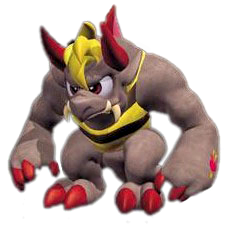 Behemoth is the mighty magical monster of Vulcan-O Valley, and the guardian to the portal into Fantasia. He keeps the last piece of Magicite. His ability is Charge, which speeds up Behemoth to spin racers out or potentially give them a level 3 crash while they're spinned out. He drives the Behemo-Buggy 99. His theme is a remixed version of the cave theme from Final Fantasy III.