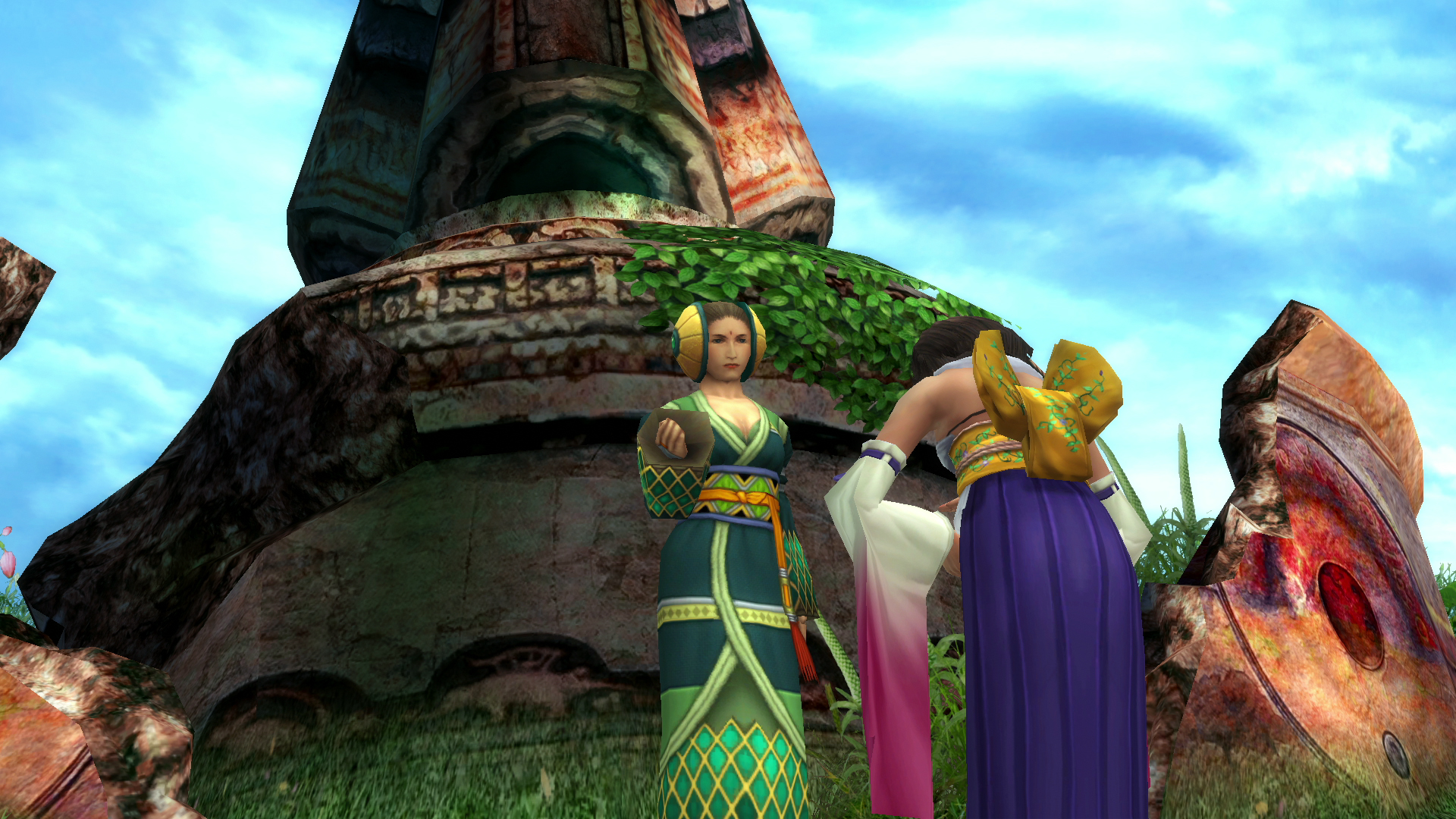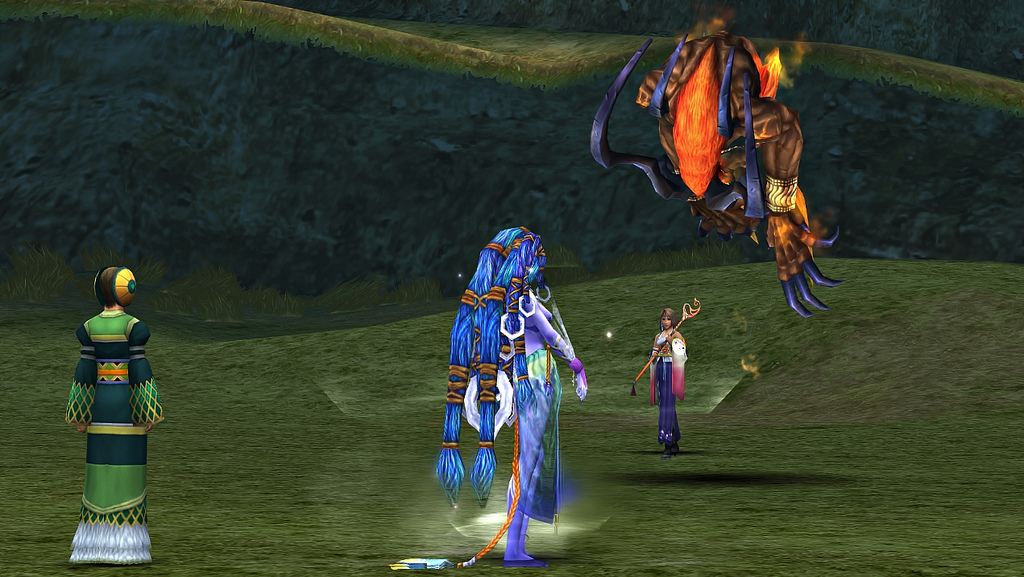 Should Tidus rent and ride a chocobo, the party can travel to Remiem Temple via the chocobo feather in the Calm Lands, where Belgemine reveals that she is an unsent. She asks Yuna not to send her yet, as she sees Yuna to be a potential high summoner and trains her in the hope that she will defeat Sin.
