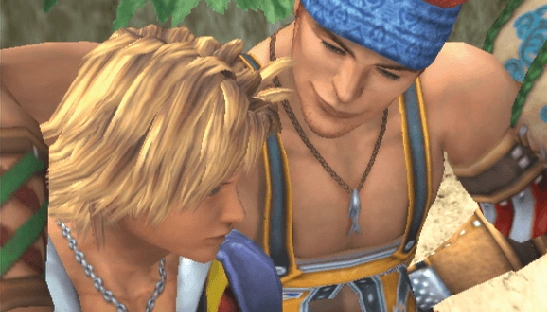 Tidus washes into the shallows off a beach where a practice game of blitzball is in session. He meets the team's captain, Wakka, who brings him to Besaid Village.