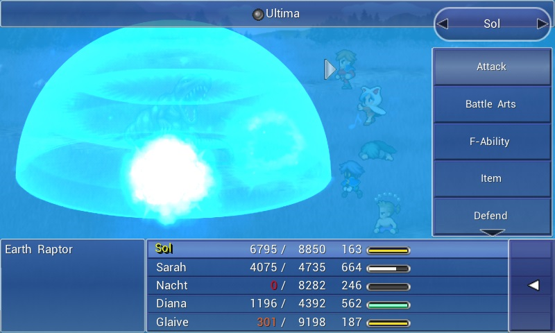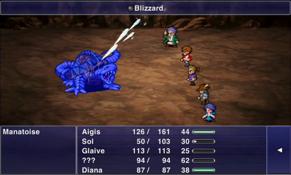 | Blizzaga | 6000 | 6 | 32 | Major Ice damage to one or all enemies. |