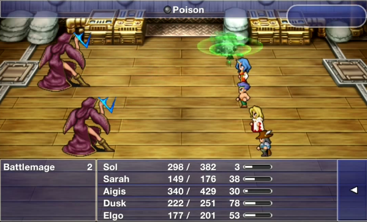 | Poison | 300 | 2 | 2 | Inflicts Poison on one or all enemies. | |
