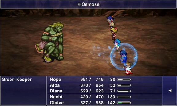 | Osmose | 3000 | 5 | 1 | Steals MP from a target to restore one's own MP. | |