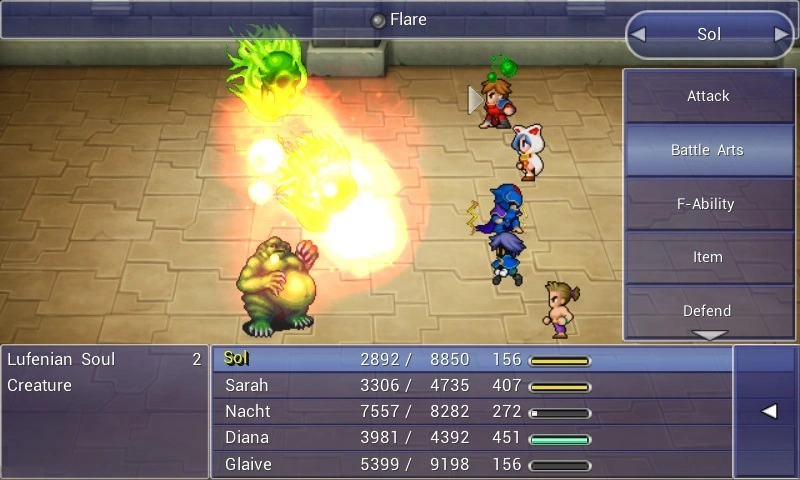 | Flare | 0 (learned by the Magus job at level 1) | 8 | 45 | Major non-elemental damage to one enemy. | |