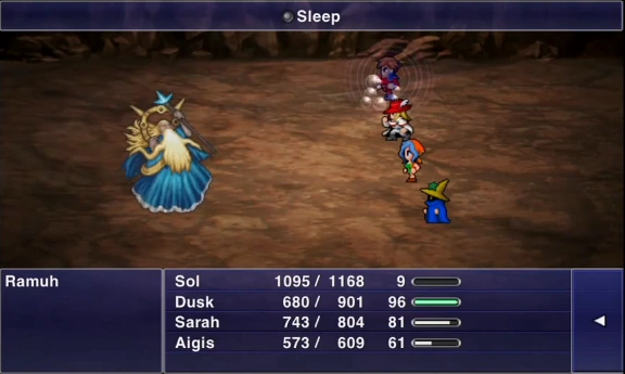 | Sleep | 300 | 2 | 7 | Inflicts Sleep on one or all enemies. | |