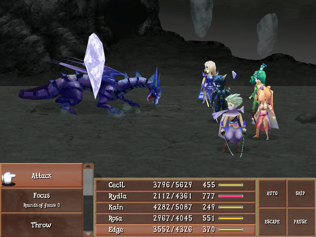 25 | 30 | Reduces target's HP to critical level. Casting time of 2. It has an accuracy of 75% in 2D versions, and 70 in 3D versions. | Rydia (2D): LV 51 Rydia (3D): LV 58 Palom: LV 48 |