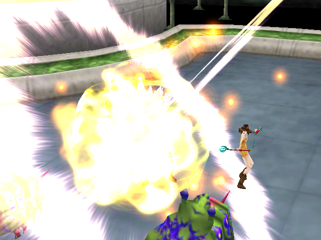 During the Balamb Garden Revolt event, the Garden Faculty at the cafeteria ushers a higher-level Bomb at the player party if they have declared they are aligned with Headmaster Cid. This may be the first enemy the player encounters that has Meltdown. The Faculty at the quad also summons a Bomb, but this one is of usual level and accompanied by a Glacial Eye.