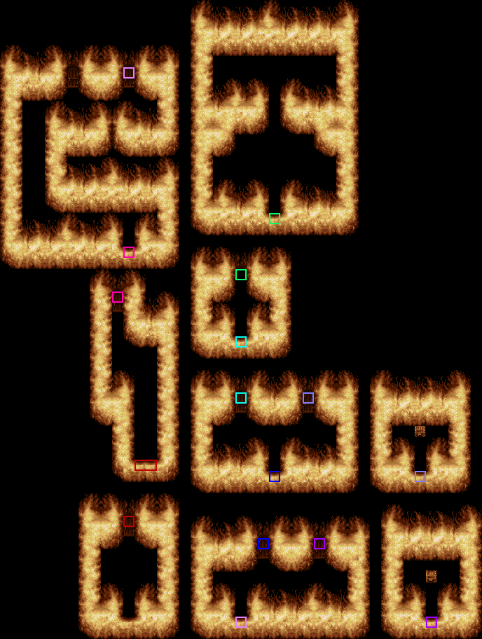The Burning Home is a very straightforward dungeon, entirely linear save for two side rooms that contain treasures. There are no random encounters, just the scripted encounters with Balloons. Strago joins the party knowing the Aqua Breath Lore, which can easily wipe out the Balloons in every battle.