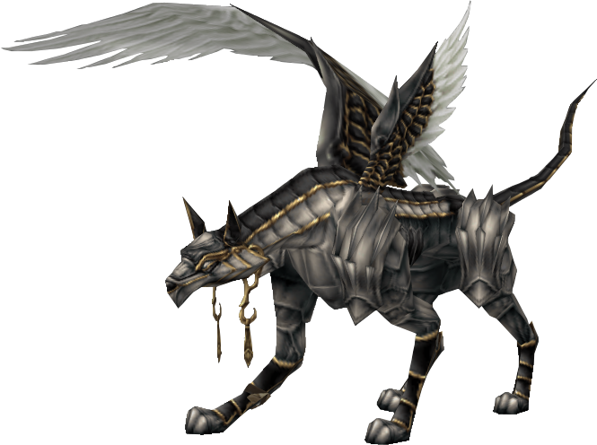 An unnamed canine Angeal copy is a creature in Crisis Core -Final Fantasy VII- that appears in the Sector 5 slums church in chapter 7 and appears to settle there thereafter. It is a copy of Angeal Hewley that takes on the appearance of a winged canine, wolf or dog. Though not stated outright in the game, the unnamed copy seems to represent Angeal Hewley's will.