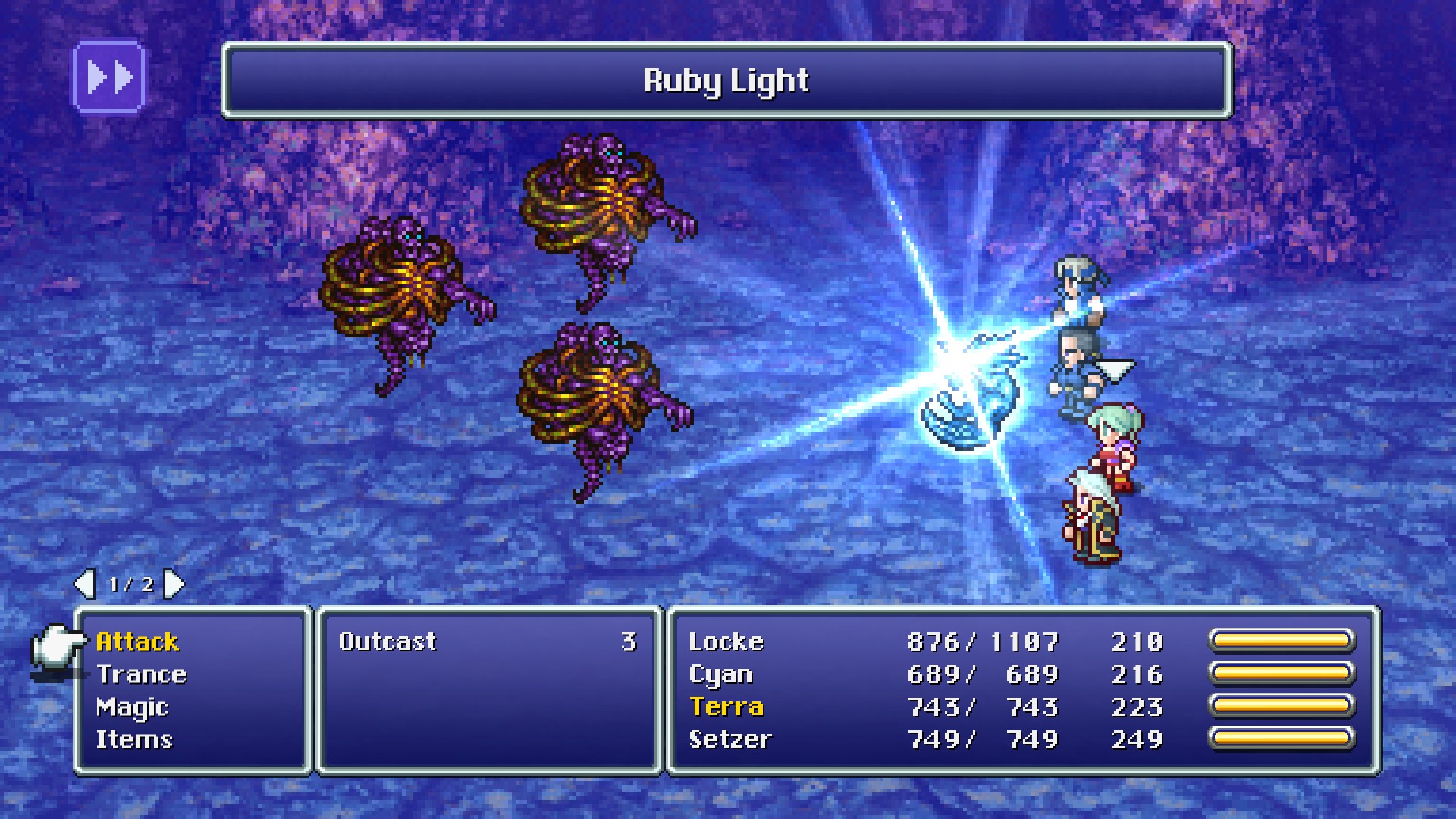 Carbuncle teaches many useful utility spells. With the exception of Reflect, all of them are taught by other espers and at higher learn rates, but several of these espers are not available until the World of Ruin. It is also the only esper to teach Reflect.