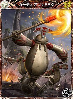 Cardians are Automaton guardians of the Federation of Windurst in Final Fantasy XI. They were created during the Crystal War by Minister Zonpa-Zippa of the Manustery to bolster Windurst's military ranks. Sometime after the war, for unclear reasons, many of the old generation Cardians went rogue and kidnapped Zonpa-Zippa. Most are seen lurking in the Horutoto Ruins. Windurst currently uses a newer generation of Cardians as guards, under the guidance of Zonpa's daughter, Apururu.