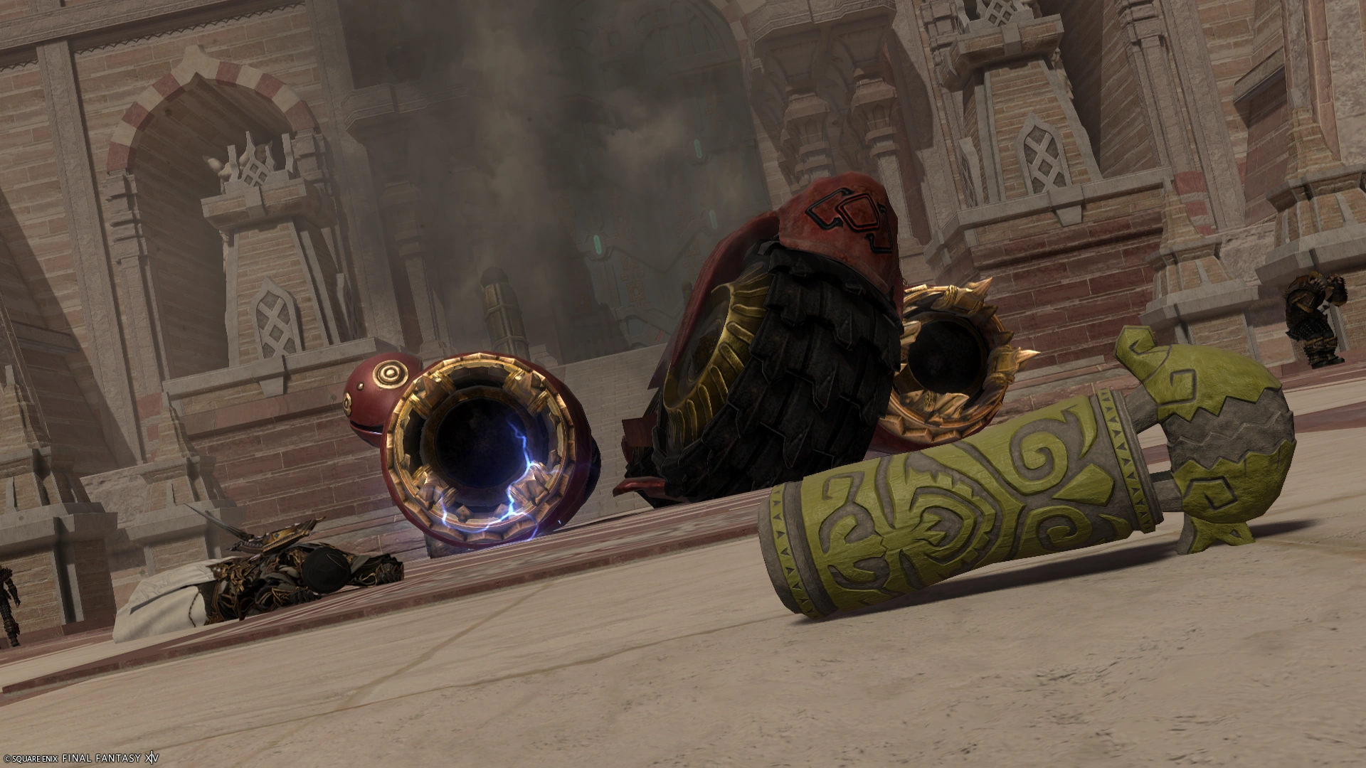 Avenel and Pepin have escaped from Chalteaufite, and they reveal that Chalteaufite has already left to conquer the Royal Palace of Ala Mhigo. Taking advantage of the fact that Chalteaufite's weaponry couldn't get past the staircase, The Warrior of Light, Ceetol Ja, and Kaqool Ja managed to reach the Royal Palace before Chalteaufite's gang had begun their invasion. Remembering that "Cracks form in even the most powerful shields", the Warrior of Light was able to break through the artifact barrier and defeat Chalteaufite. Ceetol Ja then recovered the Steelhog Vessel and used its power to knock out Chalteaufite. After the battle, Kaqool Ja revealed that he wanted to turn himself in to the authorities to pay for his crimes. Kaqool Ja also wishes to one day apologize to the members of Ceetol Ja's village for the damage he caused by using the artifact, should he have the opportunity to visit. Ceetol Ja herself welcomes the idea, but for now, there are more immediate concerns, such as returning to Tuliyollal.[6]