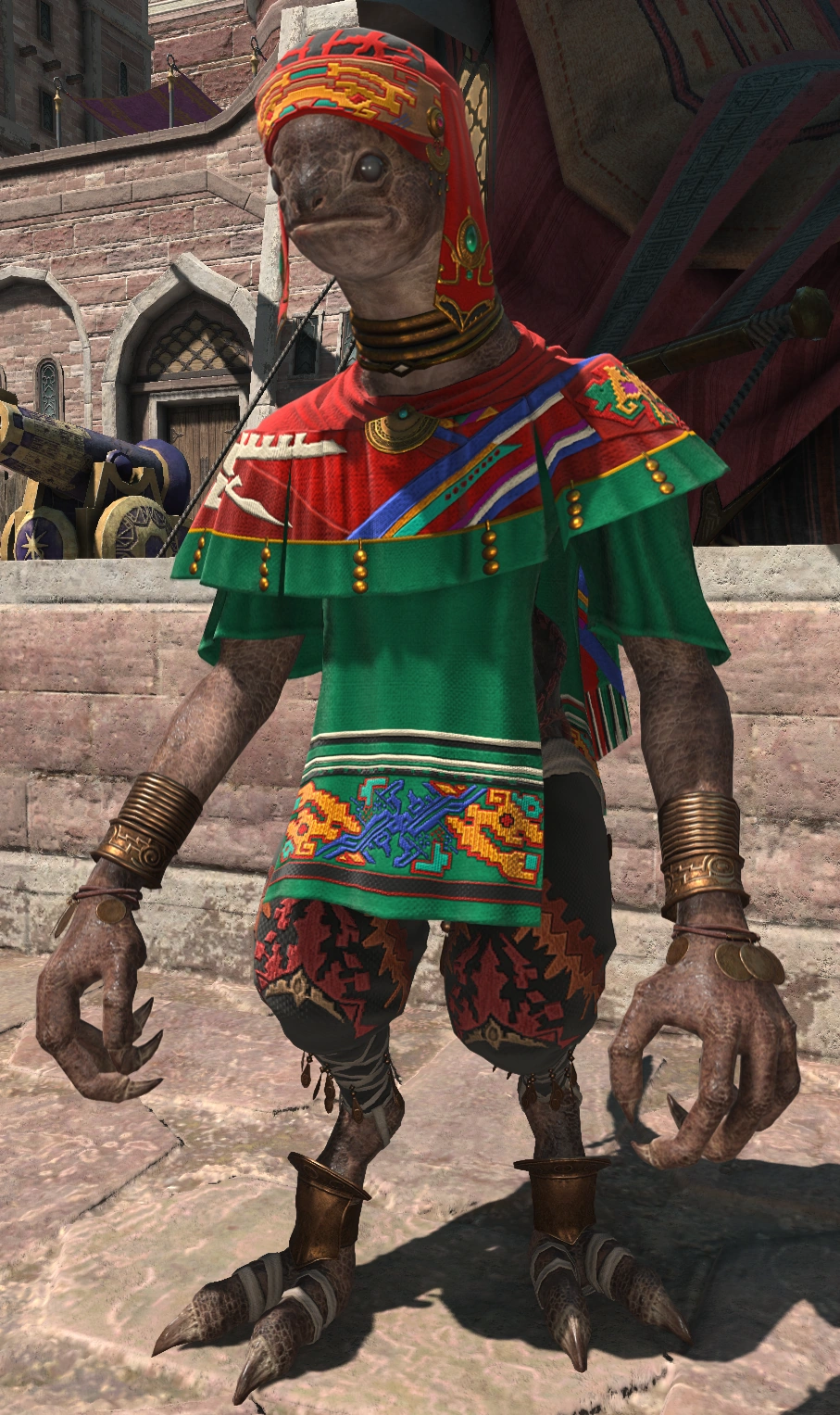 Ceetol Ja received a letter from an unknown sender requesting that the Warrior of Light travel secretly to the Ala Mhigan Quarter to meet a bespectacled man. Ceetol Ja prepared a disguise so that the Warrior of Light could pass through the crowd without attracting attention. When meets a man wearing glasses, he turns out to be one of Avenel's companions who have decided to abandon Chalteaufite. Kaqool Ja appeared and told how he had failed in his attempt to confront Chalteaufite and recover the Steelhog Vessel. Kaqool Ja was no match for the Vessel's power but managed to escape with only minor injuries. Kaqool Ja told how Chalteaufite's plan was to conquer Ala Mhigo, with the palace as the most likely first target.[5]