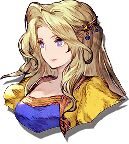 A general from a faraway world who became involved in the tale of the espers and humans. While she was a peerless force in battle, she opposed the cruel methods of the Gestahlian Empire, and this led her to be branded a traitor and thrown into prison. She was rescued the day before her execution by Locke, and thereafter joined forces with the Returners.