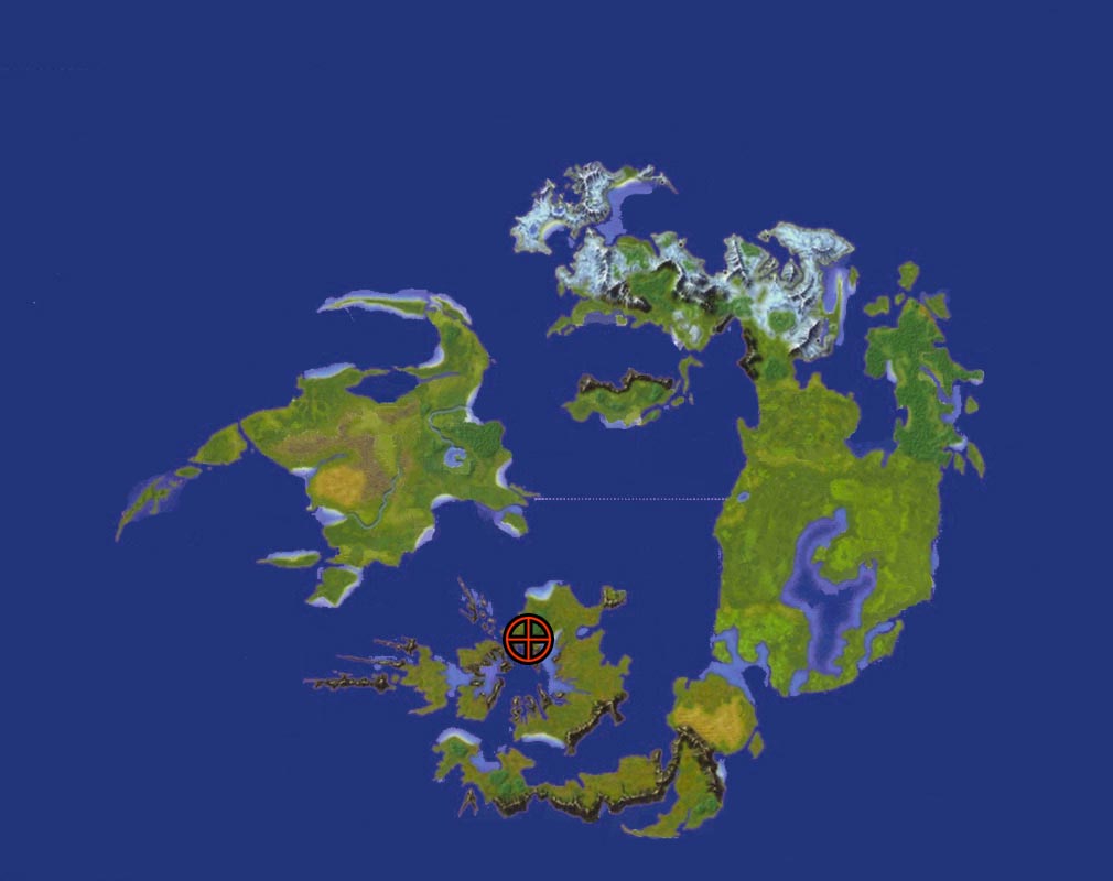 The excavation was located within the Centra continent just north of the Centra Crater among the mountains. In the present day, all that is left of the site are blue markings on the ground (a draw point for Demi), which reveal its exact location.