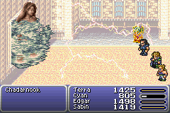 Chadarnook is a boss in Final Fantasy VI fought in Owzer's Mansion in the World of Ruin. It is a demon possessing a painting of the esper Lakshmi, whose magicite Owzer has stored in his bookshelf. Owzer bought the magicite at auction, and felt a need to have someone paint Lakshmi. Owzer hired various painters, but none were able to paint her to his satisfaction. When he heard of Relm Arrowny, he hired her, but as she is painting, the demon tries to possess the artwork, and attacks the party.