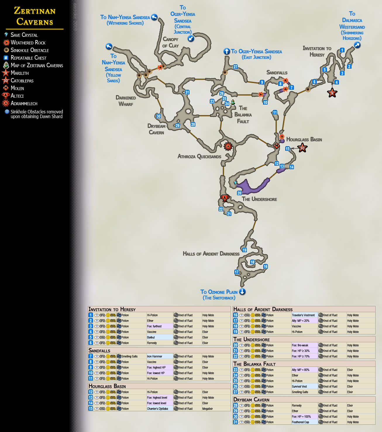 In the updated Zodiac versions, the Chanter's Djellaba is sold for 1,400 gil by Dyce in Nam-Yensa Sandsea, Tomb of Raithwall, and Balfonheim Port, in Rabanastre after defeating Belias, and in Jahara. It is found as a treasure in Nam-Yensa Sandsea's Simoon Bluff (75% chance to appear, 30% chance for gil, 50% chance the item treasure is the Chanter's Djellaba without the Diamond Armlet equipped), in Tomb of Raithwall's Northfall Passage (80% chance to appear, 30% chance for gil, 50% chance the item treasure is the Chanter's Djellaba without the Diamond Armlet equipped), and in Zertinan Caverns' Sandfalls (90% chance to appear, 50% chance for gil, 50% chance the item treasure is the Chanter's Djellaba without the Diamond Armlet equipped), as well as in the Trial Mode Stage 44 with the Diamond Armlet equipped.