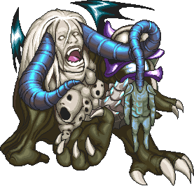 From this point on, Chaos Elgo will switch between three forms: the default form which uses physical and non-elemental attacks, the Dark form which uses Black Magic, status ailments and Dark-elemental attacks, and the Light form which heals and casts buffs on itself while unleashing Holy-elemental damage. The light and dark forms are resistant to their respective elements and weak to the other. At this point his attacks for the Dark form involve Meteor, Dark Flow which now damage the party for 2000-3000 damage and heal himself for 4000, and Black Hole which dispels all buffs. For his Light form he can use White Form to buff himself with protective magic and heal himself for 5000, Pandora's Box which like the previous fight give him access to Axion, Neutrino and Neutralino and Holy, which can inflict close to 3000 damage and above. His normal form will use Eclipse, may counter attacks with Gravity and use high level spells.