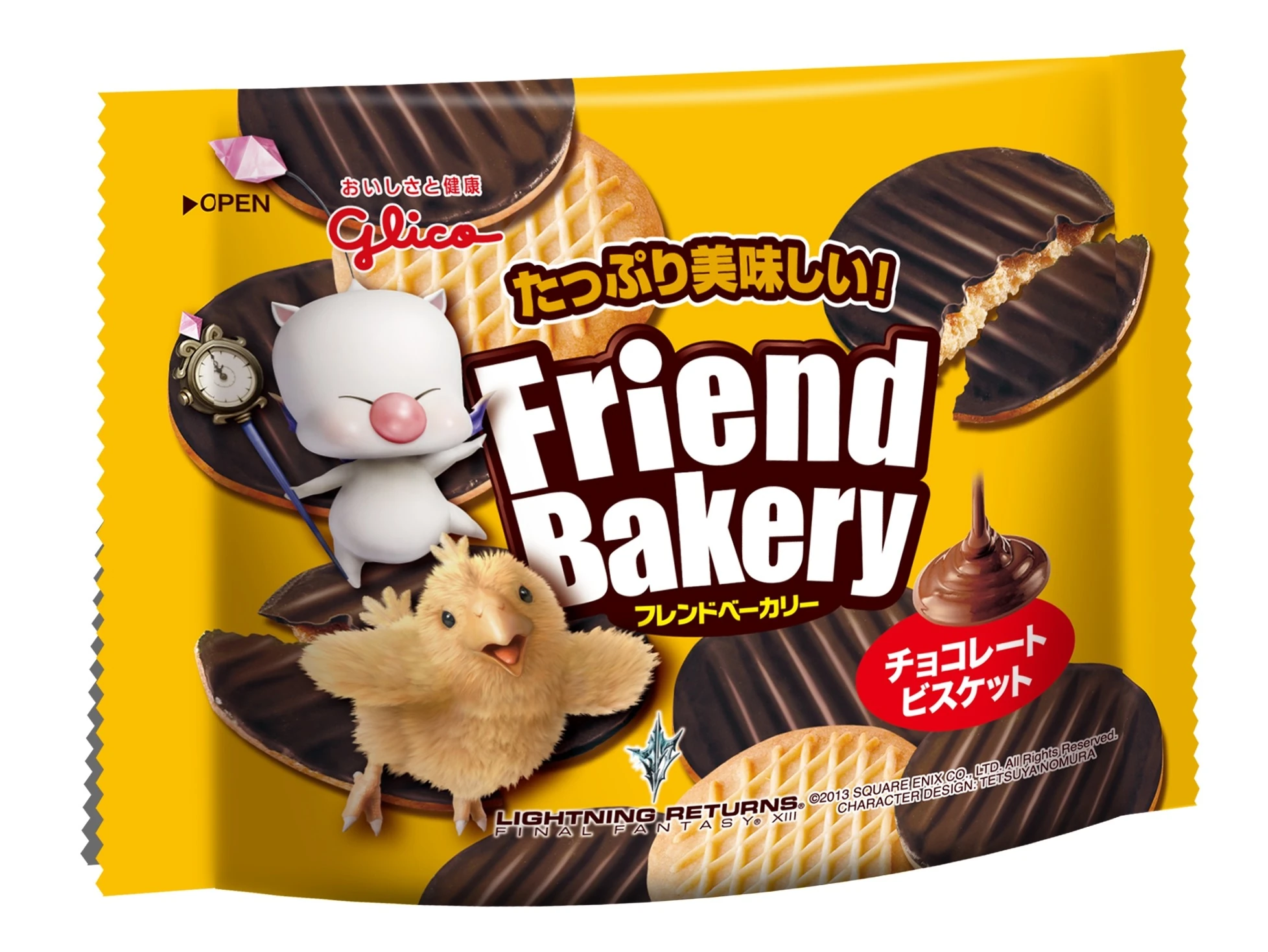 Glico, the snack company has been working with Square Enix to promote Lightning Returns: Final Fantasy XIII in Japan. Friend Bakery will have Mog and Chocobo Chick on its wrapper.