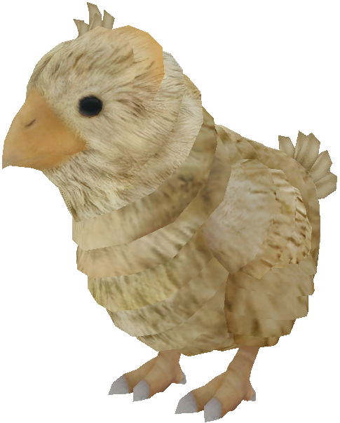 Sazh purchased this chocobo chick at a stall in Euride Gorge for his son, Dajh. However, while his attention was on the transaction, Dajh ran into the energy plant and headlong into the incident that changed him into a Sanctum l'Cie.