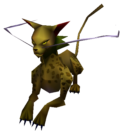 The Coeurl Cat, also known as the Wild Cat, appears as an enemy encountered in Owzer's Mansion in Jidoor. If it the last enemy remaining, it can counterattack with Fireball. Te Tabby Suit armor usable by Strago and Relm can be stolen from it. While it has access to Blaster, it can only use it when Sketched, Controlled, Confused, or Raged.