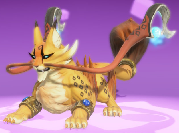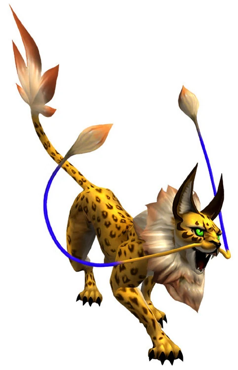 The Coeurl appears as a family of beastkin native to the Near East, introduced to Eorzea as an invasive species by importers hoping to train them as beasts of war. The common Coeurl appears as mid-level enemy found in Outer La Noscea, and can also be obtained as a by purchasing the A Realm Reborn Collector's Edition. Toramas appear as a distinct sub-genus of Coeurl distinguished by their white pelt and bony protrusions.