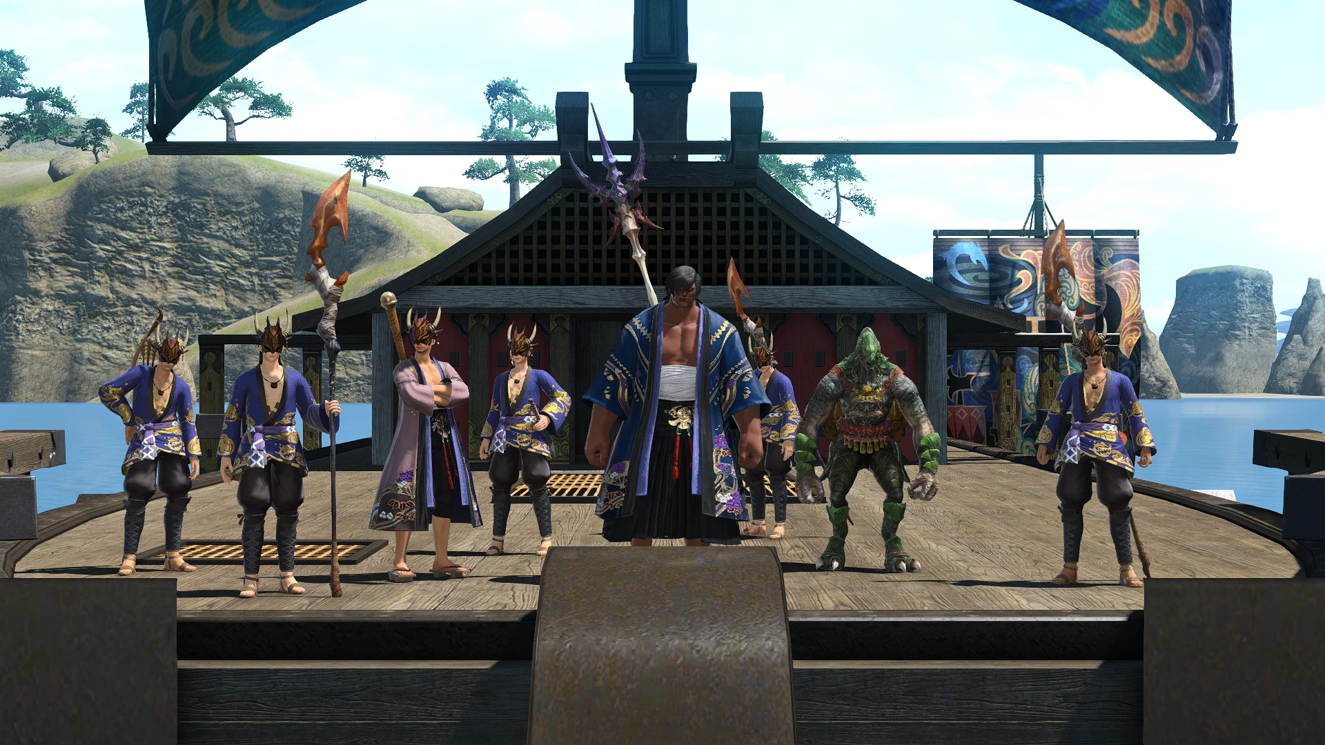 Hancock Fitzgerald, Soroban, and Seiryu of the Four Lords would approach the Confederacy for aid in procuring aether-rich treasures from the Ruby Sea to complete Sharlayan's starship Ragnarok. They were delivered by the Majestic Theater Company aboard the Prima Vista.