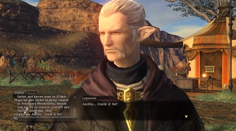 Corguevais revealed to Ascilia the truth behind her father's death and tried to take her back to Ala Mhigo. When the pair was intercepted by Niellefresne's group, Corguevais used the horn that Niellefresne had used at the festival to call a horde of minemites, allowing him to escape while leaving Ascilia behind.[4]