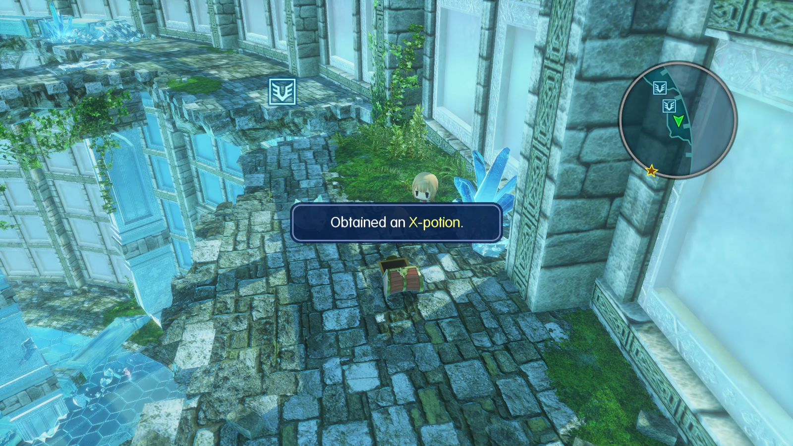 The Crystal Tower is a dungeon located at the Nonary Region of Grymoire in World of Final Fantasy. It is first visited in Chapter 19, "The Other Nine Wood Hills" and is the starting location of Chapter 20, "The Crimson Prophecy's End".