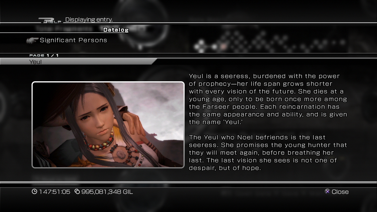 The data of Yeul in Final Fantasy XIII-2 Datalog.