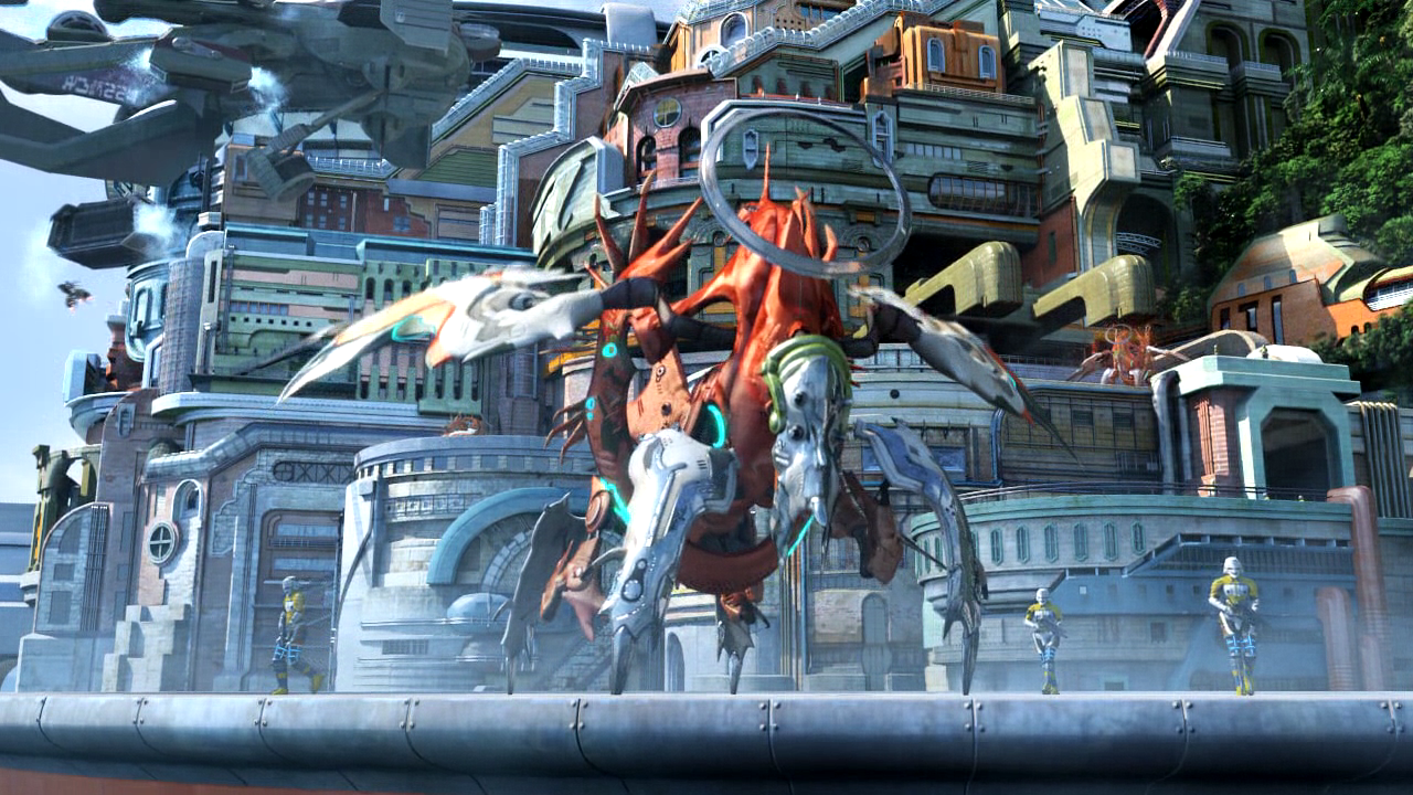 Lightning and her friends return to Cocoon only to be greeted by the sudden appearance of an army of mechanical monsters and gigantic beasts. The fal'Cie have activated the Ark hidden beneath the capital, releasing an army of Pulsian terrors into the city.