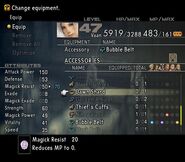 In the Zodiac versions it is more usable, as the job system has jobs that learn almost no magick, anyway. It could be good against enemies that use a lot of magick, especially when coupled with Shell, and the wearer can still use items to compensate for their inability to use magick. However, the inability to partake in Quickening chains is a big downside.