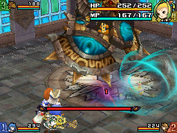 The Deathgaze is a levitating creature, and only a character with Double Jump can reach it. It attacks with Lightning beams, which inflict the Paralysis status, and a wing attack. If a character jumps on top of it, the Deathgaze will cover itself in purple light, which does heavy damage. Casting Gravity at the beginning of the battle will drop its HP considerably, as well as pinning it to the ground. Breaking the casing around the diamonds on its wings will allow the player to damage its weak spot, and if one attacks the diamonds sufficiently, it will have a Gravity effect upon it.