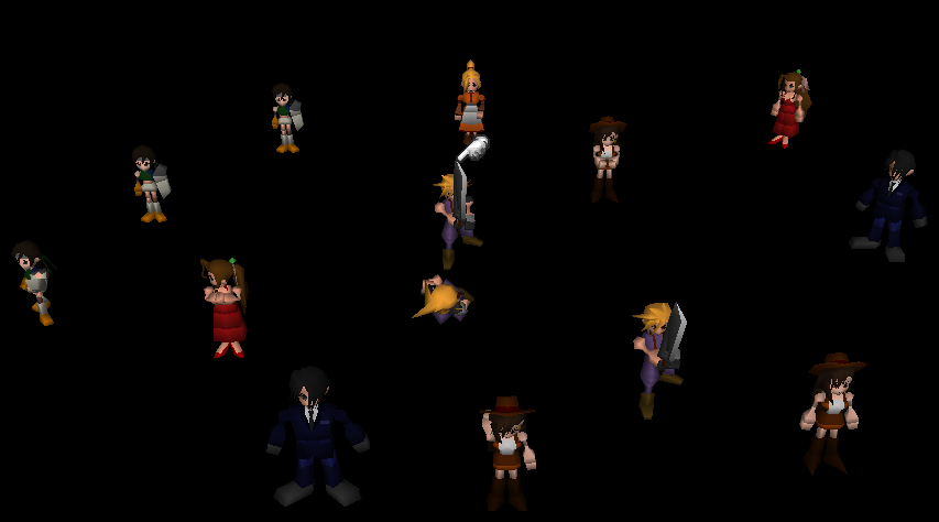 The Thousand Room is a room of the Debug Room in Final Fantasy VII. It houses thirteen characters. This room is unique in that the character options can be changed by pressing