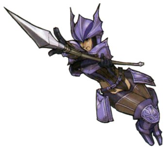 The Valkyrie job from the Bravely series is inspired by the Dragoon job from Final Fantasy. Like the Dragoon, it specializes in utilizing spears to perform jump attacks such as Jump, High Jump, and Sky High. The Valkyrie is named after the job of the same name from Tactics Ogre.