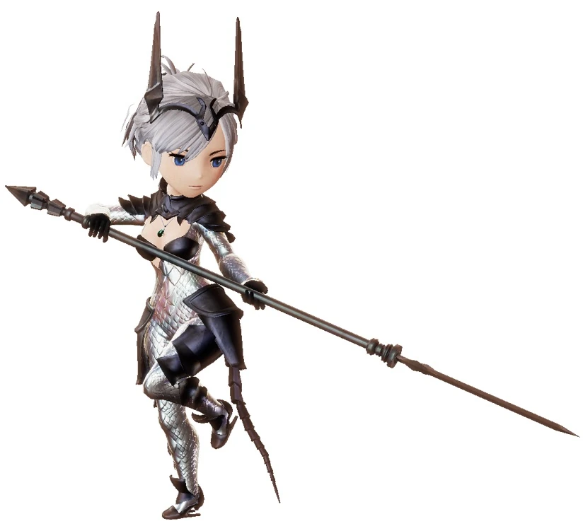 The Dragoon is a job in Bravely Default II, replacing the Valkyrie from previous titles. The job's physical appearance is inspired by the Final Fantasy XIV version of the job, with male characters donning similar armor to job's artifact armor from the title. It has access to several iconic moves from its Final Fantasy counterpart - Jump, Super Jump, Sky High, Sonic Thrust, Spirit Surge, and Thunderbolt Thrust (known as Bolt Full Thrust (ボルトフルスラスト, Boruto Furu Surasuto?) in Japanese).