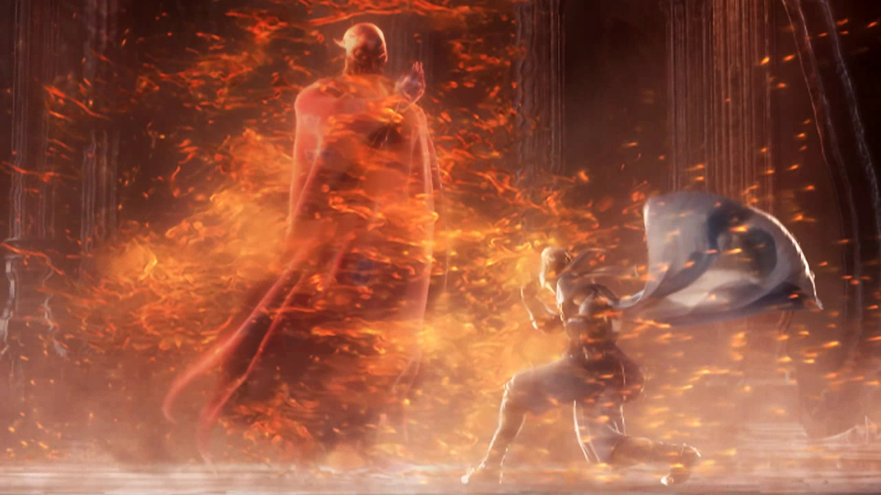 Edge fighting Rubicante in the Final Fantasy IV opening (PC).