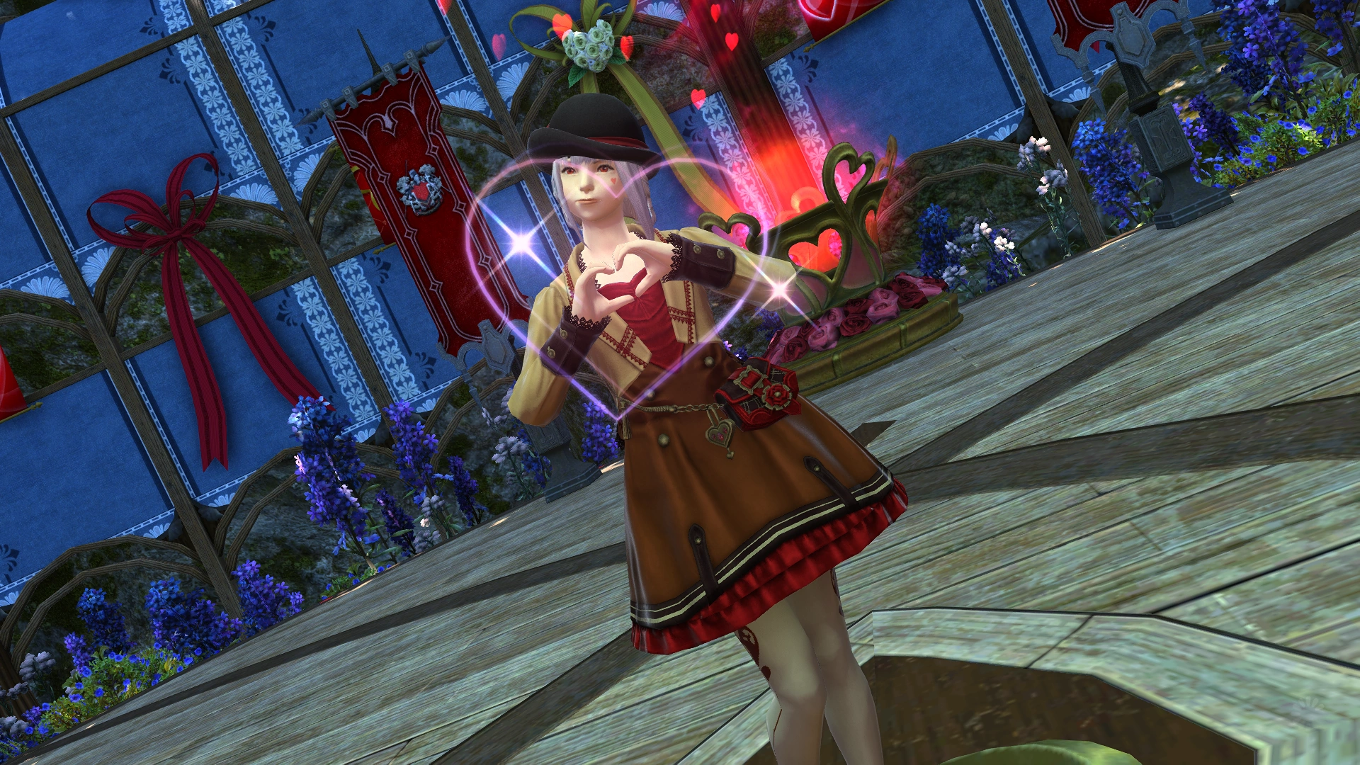 Astrid asked the Warrior of Light to check on Emilie, who was preparing a mysterious surprise for the festivities. Emilie is grateful for his concern, but remains shy. Astrid thanked them for helping Emilie, who was now ready to reveal her surprise. As she performs the so-called "love heart". Explaining that she hopes this expression of affection will inspire others to act on their feelings, Astrid wants the Warrior of Light to join Emilie in demonstrating it to the townspeople. With perfect timing, Lisette de Valentione enters the stage, eager to help.[2]