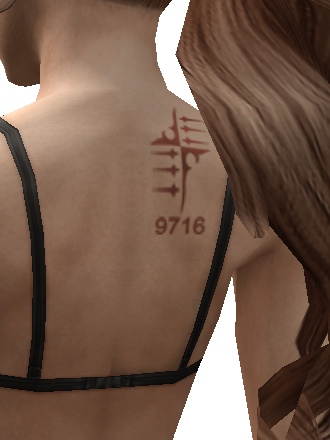 Emina sporting an oddly-shaped tattoo.