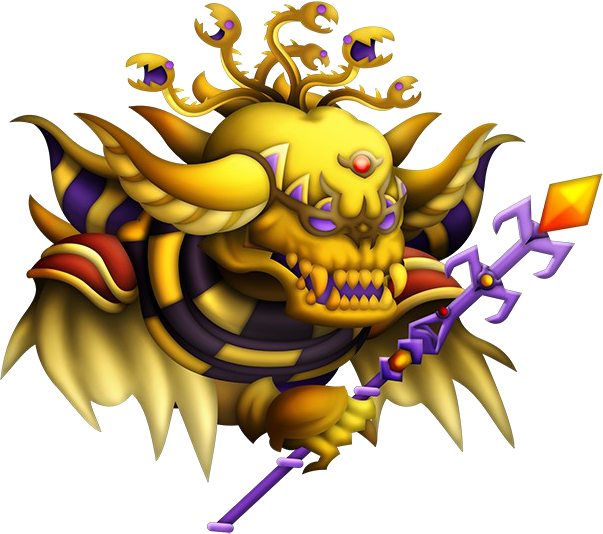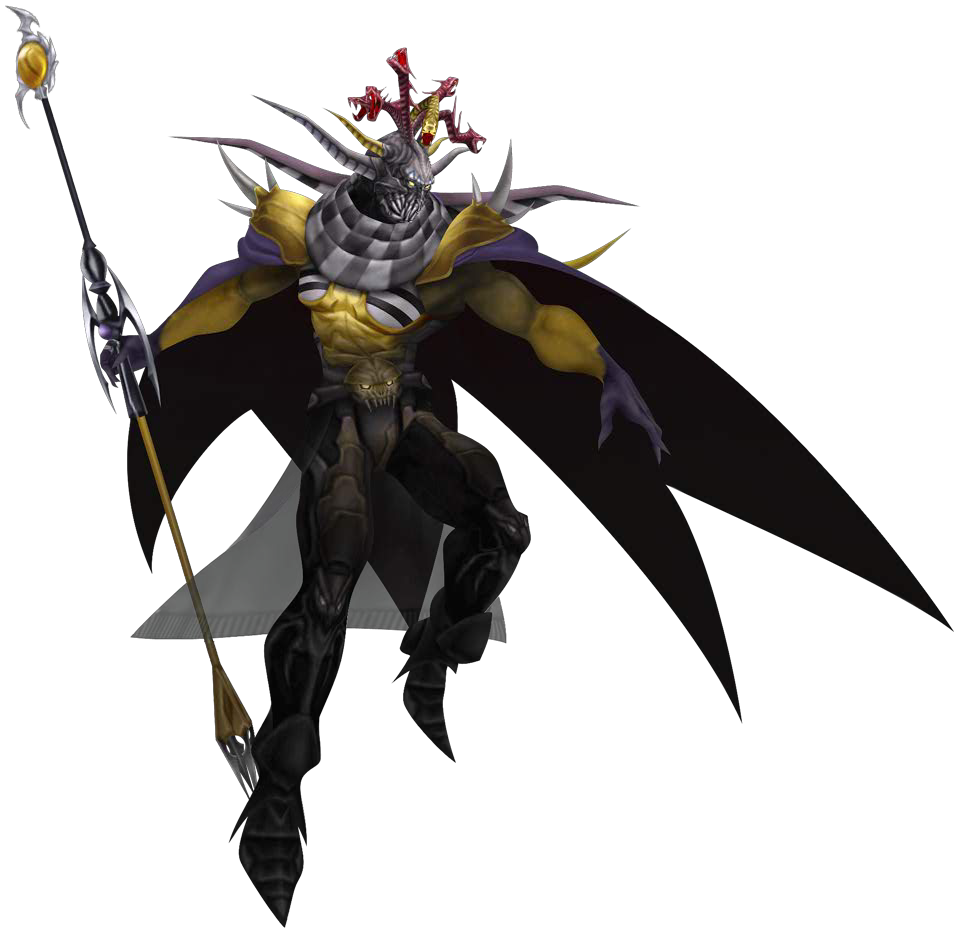 The Emperor of Hell appears in game as part of the Series Boss Battles, representing Final Fantasy II. The Emperor's arsenal of attacks almost exclusively Fire attacks, most of which are not used in his original incarnation. His drain attack is also replaced by his human counterpart's Elixir supply.