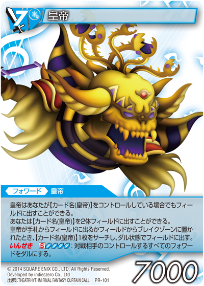 The Emperor appears with an Ice-elemental card. His design derives from the Famicom version.