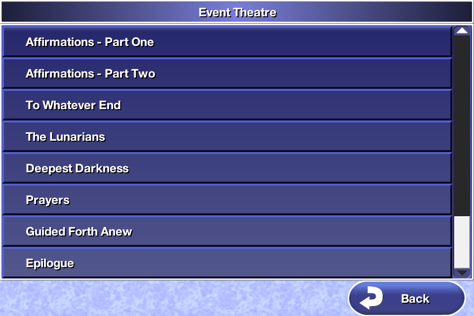 The Theatre allow the player to view the movies from Event Music Sequences. The further the player, the more movies they are able to view. There are 11 movies to view.