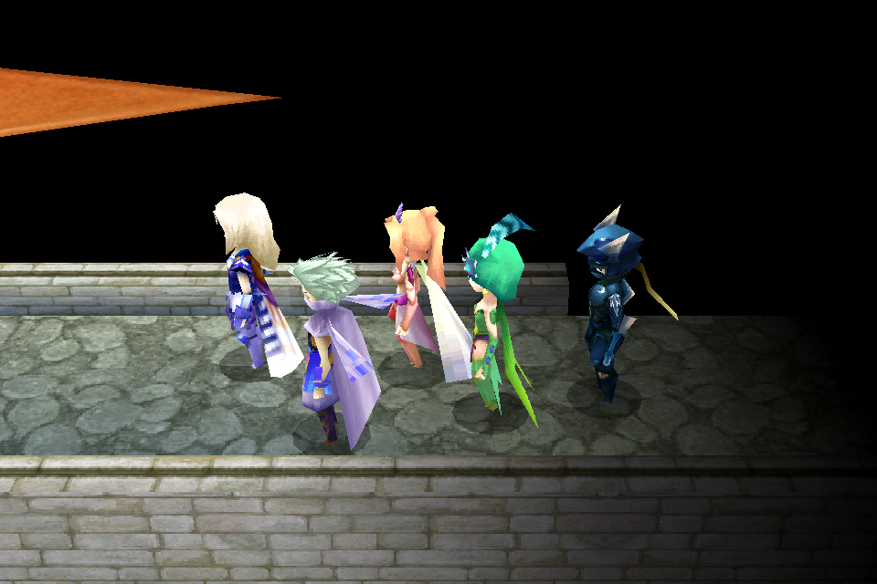 In Final Fantasy IV -Interlude-, dwarves operate merchant services and offer healing. The Falcon is not available for player control, Cid's apprentice pilots it and flies it to the next destination in accordance with the progression of the story.