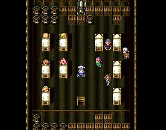 The Falcon is a standard design among airships with a main deck hosting several cannons for aerial combat and an elevated platform at the bow of the ship holding the steering controls. In The After Years, there is a staircase to a lower deck with recovery beds. During the final chapter, other party members the player rescues rest here to recover from the ordeals of their various individual chapters.