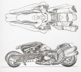 The Fenrir was designed by Takayuki Takeya who was asked to design an upgraded version of Cloud's Hardy-Daytona motorcycle from Final Fantasy VII. As development continued, the bike got bigger with Takeya feeling its heaviness gave an impact that worked well with the movie.[citation needed]