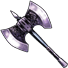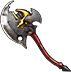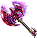 | ★★★★★★ - A large axe said to have been dropped by a demon. A large axe said to have been dropped by a demon. It holds the power to slightly increase the user's HP. One can easily tell the dark aura shrouding the axe, which is powerful enough to obliterate holy objects with a single blow. The drawback is that it is very heavy, making it difficult to handle. Seeing a person swing this axe, cleaving away at monsters, portrays an image of intense savagery akin to demons. | ||||||