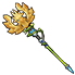 | ★★★★★★★★★ - ?? A staff used by a demon king bent on global domination, who appeared from a faraway world. The top of the staff is carved to look like a dragon's head. Those who wield it are said to gain the defensive strength of a dragon. | |||||||