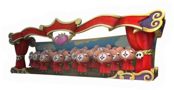 Floors are placed by Mira to raise her tower from attacks in Final Fantasy Crystal Chronicles: My Life as a Darklord. The floors must protected by the monsters summoned by Mira and a Artifact. Whenever the Artifact is destroyed the floor and any monsters inside it are destroyed.