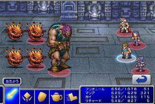 The first remake of Final Fantasy II was released on May 3, 2001. The most notable change was the graphical updating, which included more detailed sprites, a total revamping of battlefield and dungeon backgrounds, better sounds and higher resolution overall.
