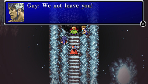 Final Fantasy II was the first game in the series to have an actual main cast of characters with names and histories. Firion, Maria, and Guy are always in the party while the fourth character changes throughout the story.